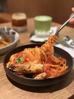 The tomato sauce was quite rich. The vermicelli was cooked perfectly and coated in the sauce. There was only one prawn, and the meat was very chewy.