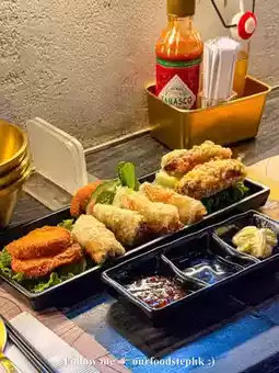Comes with 4-5 items, including spring rolls and shrimp cakes. The flavors were average, not particularly memorable.