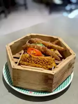 We also ordered the Chicken Feet and Black Pepper Beef Tripe combo, allowing us to enjoy two dim sum dishes at once. The chicken feet were flavorful, and the beef tripe was thick and satisfying. The Golden Crispy Pigeon was freshly fried to order! Its skin was as crispy as cellophane, and the meat was tender and juicy.