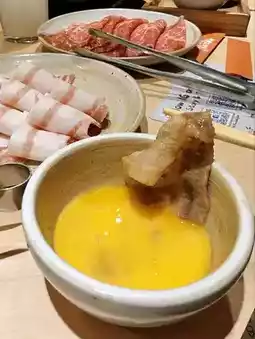 I went with a friend, and I chose the sukiyaki soup base. The staff first sautéed the pot with lard before adding the sukiyaki sauce, releasing an irresistible aroma. Cooking A4 lean wagyu in it was simply divine—the marbling was beautiful, the meat tender and flavorful, soaking up the sauce perfectly. My friend opted for the Hokkaido curry soup base paired with pork belly. The soup was mildly spicy and aromatic, while the pork had a balanced fat-to-lean ratio, making it incredibly satisfying.