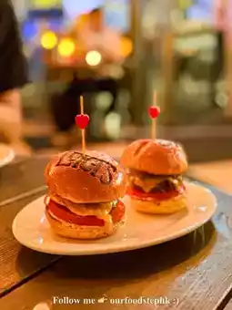 This mini burger is delicious! It has sweet onions and cheddar cheese in the middle. The burger patty has a slight numbness.