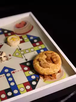 ▪️ (Traditional snack) Thousand layer mala cake served in the shape of a mahjong card, taste texture like cream bun, walnut cake crispy, tooth cheek lingering fragrance.