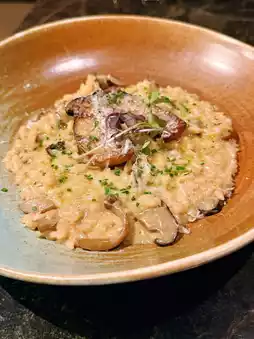 The rich aroma of porcini mushrooms pairs perfectly with the creamy risotto. The dish is flavorful, with fresh mushrooms and a delightful texture, making it a great choice for vegetarians.