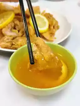 A classic Hong Kong dish, featuring marinated chicken fillets coated in cornstarch and deep-fried to a golden crisp. It is topped with a tangy and sweet sauce made from fresh lemon juice, lemon zest, honey, and custard powder, making it appetizing and refreshing.