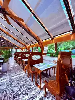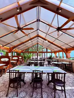 Now redesigned into an elegant restaurant with a glasshouse concept, it features colonial-style decor and exquisite bentwood furniture donated by the China Tee Club. Guests can enjoy the lush greenery and the stunning views of the South China Sea.