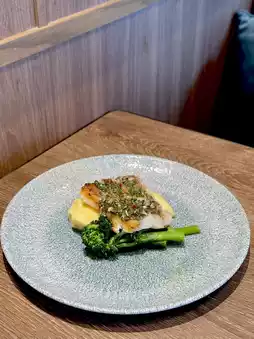 The main course chose halibut, fried to crispy skin and tender meat, with lemon butter sauce, fresh and not greasy ~ 🥩 Steak & Eggs with Fries, steak ordered medium, rich in juice, sun egg melted with french fries super satisfying!