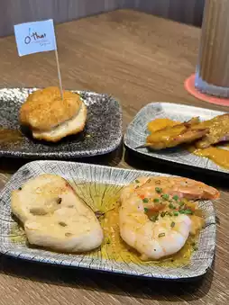 Chicken Satay The chicken is tender and not dry, and has a charcoal grill! Shrimp Cake is crispy on the outside and bouncy on the inside; garlic shrimp! The shrimp meat absorbs the essence of garlic oil, super crispy ~ and there is also evil black truffle toast! The cheese is threaded and the truffle aroma is overwhelming. A must-try!