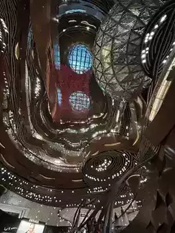 From the entrance, art installations, light and shadow designs, and architectural lines intertwine, making every corner worth pausing to admire. Whether it's the high glass dome, modern sculptures scattered throughout, or interactive installations illuminated by light and shadow, it makes you forget you're actually in a shopping mall.