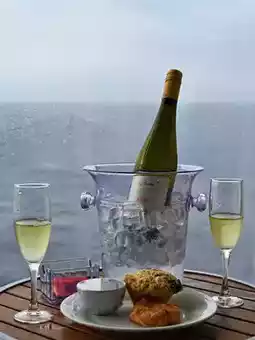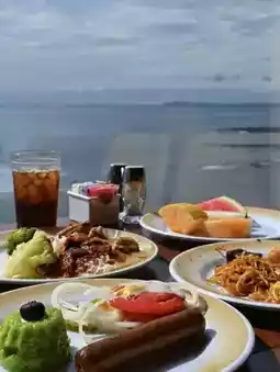 The dining options are quite diverse. The steak at the main dining room is delicious, perfectly tender even at medium-rare. The freshly baked pizzas at Sorrento's are satisfying with their rich cheese and crispy crust. The Windjammer buffet offers a wide variety of choices, and I particularly enjoyed the themed dinners at the Starbucks-adjacent counter, with Indonesian and Filipino flavors standing out. The 270° restaurant has a great atmosphere and beautiful setting, perfect for photos. As for drinks, I loved the Decaffe coffee with self-added ice—refreshing and smooth. Even the iced water was tasty and healthy.