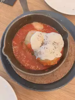 Roman Meatballs ๐ง: The Roman meatballs are impressively large ๐, with a tender texture ๐ฌ, topped with Parmesan cheese ๐ง.