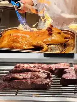 - Carnivore favorite, complete with suckling pig, two steaks, baked salmon, grilled tiger prawns, lamb leg.