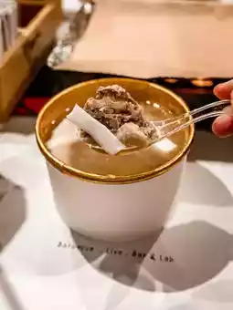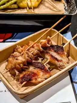 Push the door of Blibarla open and be instantly attracted by the neon sign and wine cabinet on the wall! The semi-open kitchen is filled with the aroma of charcoal fire, each table is full of young people relaxing from work, and light J-Pop is playing in the background. The whole place is full of the lively feeling of an izakaya, but without the smell of oil and smoke from a traditional skewer shop, great!