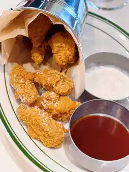 It's a single-bone chicken wings. It's very convenient to eat🐤 The outer layer is crispy and there is still meat juice inside. It's really good💕 There are two sauces you can order. Barbecue sauce and salad dressing. Salad dressing tastes a little like sour cream. It's very suitable for fried food