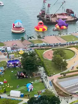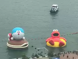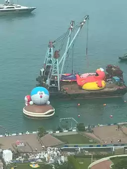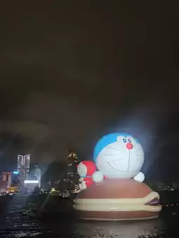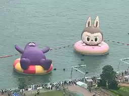 A few days ago, I noticed Doraemon and other popular cartoon characters being inflated, which piqued my curiosity. At night, I headed to Tamar Road to join the excitement. The "Victoria Harbour Sea Parade" is currently gathering popular characters like Labubu, McDonald's Grimace, Kaws x Elmo, and a giant Doraemon installation at the Central Harbourfront! There are also themed markets featuring various international popular cartoon characters, game booths, and snack stalls. The atmosphere on-site is lively, with a strong carnival vibe.