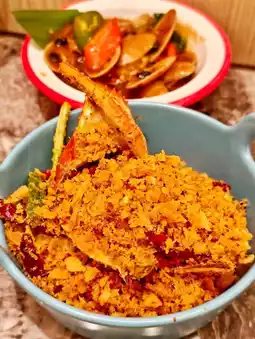 Typhoon shelter fried crab 🦀 with fresh crab meat 🥰, crispy and delicious 🤤, garlic overflowing 😍!