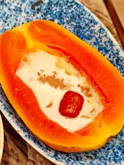 For dessert 🍰, sea bird's nest nut juice stewed papaya 🥥 nourishing and nourishing 👸, the sweetness is just right 😌!