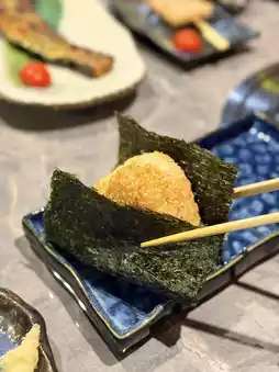 Crispy on the outside with a hint of charred rice aroma, filled with fresh sea urchin and wrapped in seaweed—absolutely delicious.