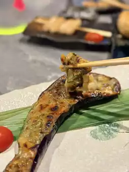 The eggplant is grilled until slightly charred on the outside, soft and tender inside, and paired with sweet miso sauce for an authentic Japanese taste.