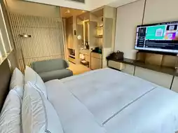 Most of the room designs are consistent with the minimalist modern of the MGallery Group, visually super chill and comfortable. The space is large enough (living in Hong Kong is not easy), some room types can see the sea, and have the opportunity to see the plane landing, very tourist feel. The hotel has a swimming pool, gym, executive lounge, family play together or couples vacation is suitable; breakfast options, fruit platters and fresh bread of high quality, tried the glass cover exquisitely presented, very thoughtful.