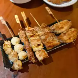 The skewer platter includes pork belly, chicken wings, chicken with scallions, quail eggs, and chicken cartilage. You can choose between salt-grilled or sauce-flavored options. All are freshly grilled to order🔥, and the flavors are quite good!!