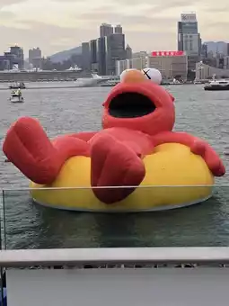 floating on the surface of Victoria Harbour, with the dazzling Hong Kong skyline as a backdrop,