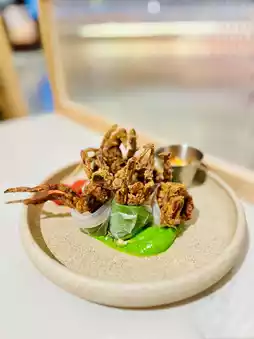 Combining Vietnamese rice paper rolls with crispy fried soft-shell crab, these rolls are soft on the outside and crispy on the inside, usually served with fresh vegetables and herbs.