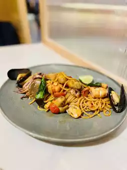 Combining the tangy and spicy flavor of classic Thai Tom Yum Kung soup with spaghetti, served with tiger prawns.