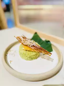 Dessert: Coconut Mango Pandan Sticky Rice - $78 A classic Thai dessert, featuring sweet mango paired with sticky rice infused with the aroma of pandan and coconut.