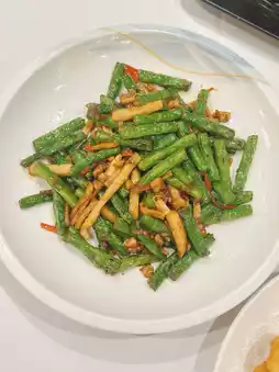 Stir-fried String Beans with XO Sauce and Mushrooms 🫛 combines spicy XO sauce 🌶️ with crunchy mushrooms and string beans 🍄🟫