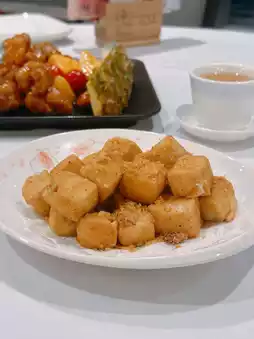 Golden Crispy Tofu Cubes 🥢 fried to a golden, crispy perfection 😆