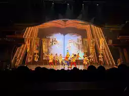 Featuring a storybook theater featuring Disney characters like Elsa, Mickey Mouse, Snow White, and Aladdin,