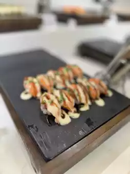 5. The restaurant focuses on fresh on-site preparation, with sushi, salad and Korean barbecue served on site.