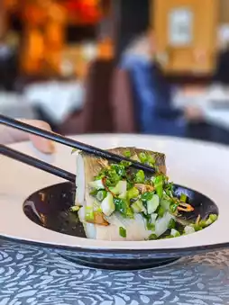 The three exquisite appetizers began: #SpicyFishMaoMaoChicken, #Pan-FriedLocalMatsusakaPorkWithBalsamicVinegarMelon, and #OsmanthusHoneyPorkCharSiu; their presentation was ethereal and the serving was ceremonial.