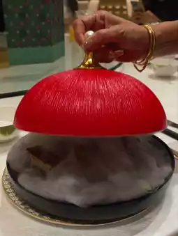 There's also a limited-time dessert, #LotusPondCarp, which is an avocado milk mousse cup. The fish-shaped tomato is made with coconut milk, and the top layer is a transparent osmanthus jelly. It's such a picturesque dessert, you almost don't want to eat a spoonful! A must-try for Instagrammers.