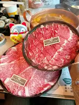 The clerk first put the iron pot with sukiyaki sauce and brought it to a boil before adding the wagyu beef