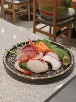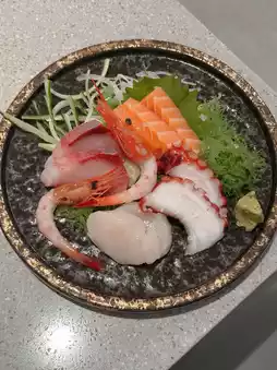 Assorted Sashimi Platter (for 2) ๐ includes yellowtail, salmon ๐, scallops ๐, octopus ๐, and sweet shrimp ๐ฆ. The sashimi is fresh and thickly sliced ๐. The yellowtail is rich and melts in your mouth ๐, the scallops are sweet and fresh, and the sweet shrimp is tender and delicious ๐๐ป.