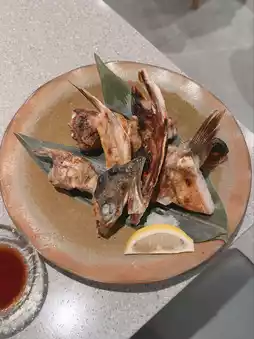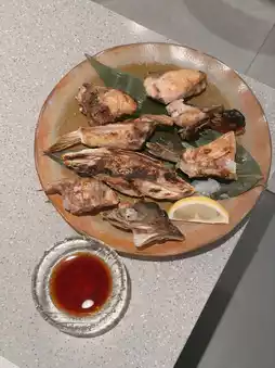 Grilled Yellowtail Fish Head ๐ : The fish head is grilled to perfection with a crispy exterior and tender interior ๐ฅ. The fish oil is evenly distributed, and the flavor is rich ๐คค. Pair it with grated radish sauce or lemon juice for an extra burst of freshness ๐ฅ๐.