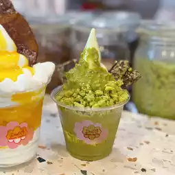 You can choose 2 ingredients and 1 sauce, I chose mango, marshmallow and mango sauce🥭~~