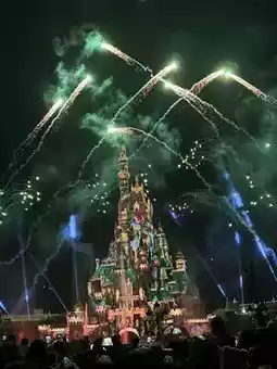 In the evening, there's also a special show, "Let's Get Wicked!", where Disney villains unite to create excitement in a fun, family-friendly atmosphere. Finally, enjoy fireworks over the Princess Castle, re-lit in shades of purple and orange.