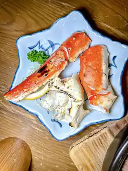 For the main course, each person can choose between grilled Hokkaido crab legs or Japanese sakura wood-smoked snow crab. I personally loved the former, with its thick, juicy crab meat carrying a hint of ocean saltiness. It’s highly recommended! The latter features rich crab roe but has more shells and membranes.