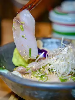 Stepping inside, the restaurant features a classic Japanese izakaya design, with lifelike art pieces adorning the walls and seasonal food recommendations available 🍢. They pride themselves on sourcing fresh ingredients daily, especially seafood, and adhere to a strict policy of not serving anything less than fresh sashimi ✊, ensuring top-notch quality. 👍