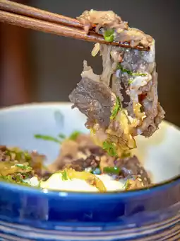 This time, I ordered two lunch sets: the Grilled Beef Bowl ($98) and an off-menu Seasonal Sea Bream Sashimi Bowl ($128). The beef in the former is grilled with a house-made sauce, perfectly balancing fat and lean meat. The sauce is neither overly salty nor greasy, allowing the natural flavor of the beef to shine 🐮. Topped with a soft-boiled onsen egg, onions, sesame, and scallions, every bite is a classic beefy delight. As for the sea bream sashimi bowl, it’s usually paired with a tangy dipping sauce, but here it’s enhanced with Kyoto scallions, sesame, and fragrant green onions, creating a rich and layered flavor profile that elevates the fish’s natural freshness without overpowering it. 😋