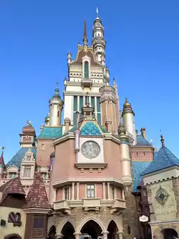 1. Castle of Magical Dreams at Sunset – The iconic castle glowing in golden hues, with Disney characters waving from the balcony and confetti drifting through the air.