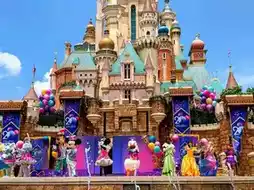 3. Main Street, U.S.A. Parade – Vibrant floats with Mickey, Minnie, and Duffy & Friends, dancers in sparkling costumes, and crowds cheering under colorful balloons.