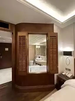 As for the room design, the most signature feature is probably the small wooden window next to the bathtub that you can open at will—imagine soaking in the tub while watching a live World Cup match. How chill is that? The bathroom is also equipped with a speaker connected to the TV, and you can control the volume, ensuring you won't miss a single goal!