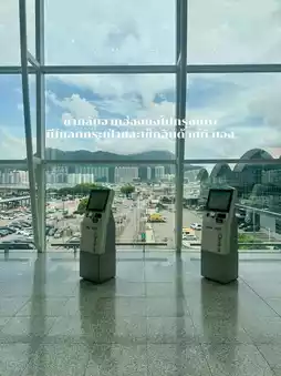 Seats arranged 2-4-2 with personal screens. On the return from Hong Kong, self check-in and baggage drop are available.