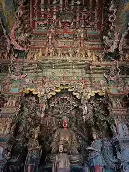 Located in Xixian County, Xiaoxitian is like a dazzling gem embedded in Linfen's land. This temple is renowned for its exquisite Ming dynasty suspended sculptures. Inside the Mahavira Hall, 1,978 gilded and painted sculptures display diverse expressions and lifelike details, transporting visitors to a mystical Buddhist realm. These sculptures are not only aesthetically stunning but also crafted with exceptional skill. Every figure's attire, expression, and posture are meticulously depicted, showcasing the extraordinary craftsmanship of ancient artisans. When sunlight streams through the windows onto the sculptures, the hall glows with golden splendor, resembling a celestial sanctuary. Here, you can find tranquility, appreciate the profound depth of Buddhist culture, and marvel at the unique charm of ancient art.