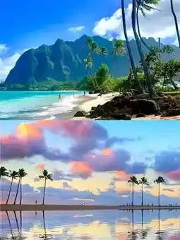 1. Waikiki Beach: Oahu's most famous beach, with fine sand and clear water, it's a haven for surfers 🏄♀️ Here, you can bask in the sun, try surfing, diving, and other water sports.