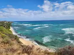 The next stop is Makapu'u Lookout, located at the southern tip of Oahu. This spot offers panoramic views of the Pacific Ocean. It's an ideal place to stop and take photos, with the ocean and sky blending into a beautiful panorama. On clear days, you can see small islands in the distance. The breathtaking scenery will leave you in awe.
