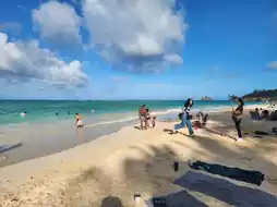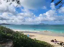 The highlight of this trip is Kailua Beach. About a 45-minute drive from Honolulu, this beach on the east coast is a quiet spot loved by locals, away from the tourist crowds. The white sandy beach and turquoise blue sea create a picturesque setting.